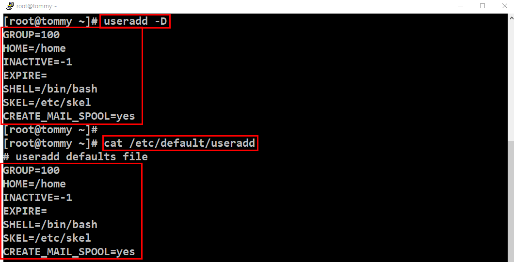 사용자를 생성할 때 사용자 기본 생성 정보 확인하는 방법은 'useradd -D' 와 '/etc/default/add' 두개가 있습니다.