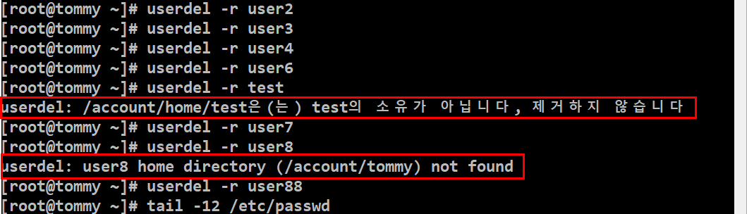 사용자를 삭제하는 방법으로는 'userdel' 명령어를 사용하는데요.