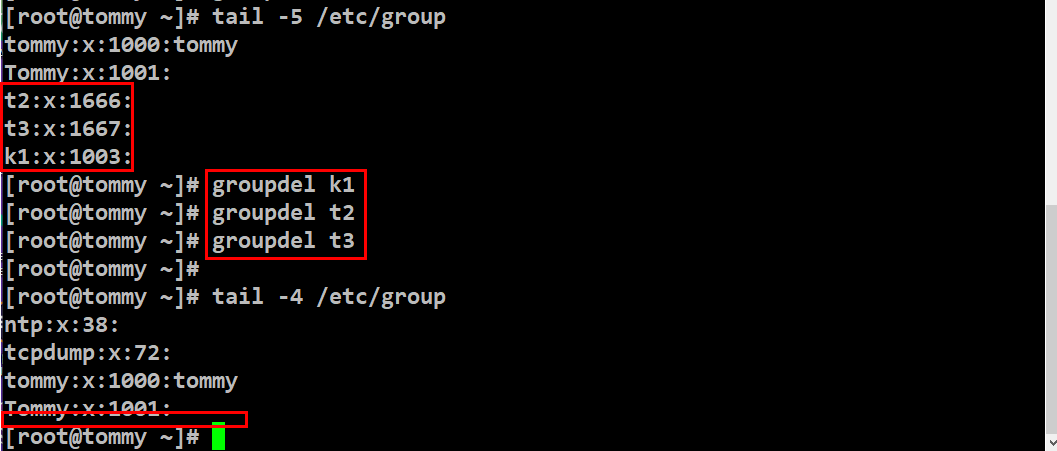 위에 사진을 보시면 'k1', 't2', 't3' 세 그룹이 삭제된것을 확인할 수 있습니다.