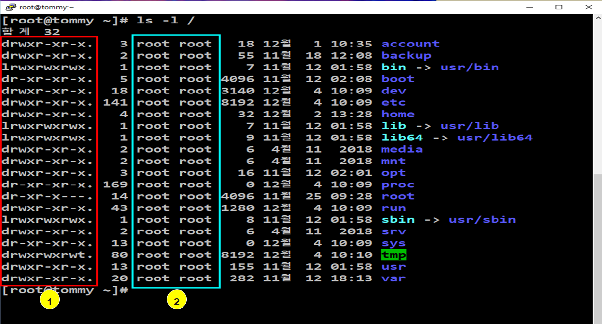 'd'로 시작하면 '디렉토리'를 나타내는 것이며, '-' 하이픈으로 시작하면 해당 문서는 '파일'이라는 것을 알려줍니다.